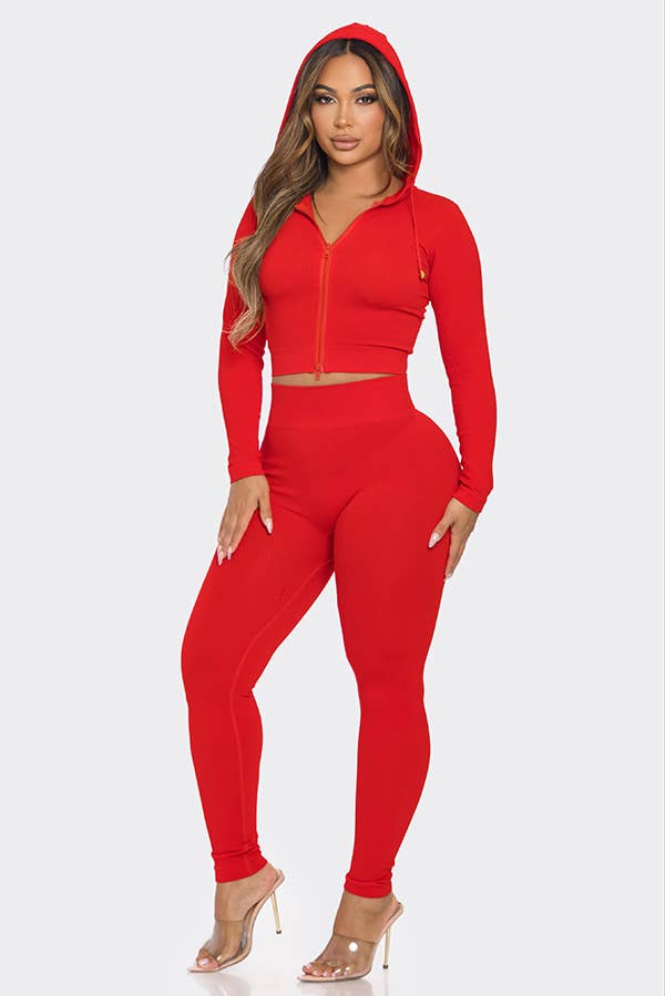 2 Pcs Seamless Long Sleeve Hoodie and Highwaist Legging Set