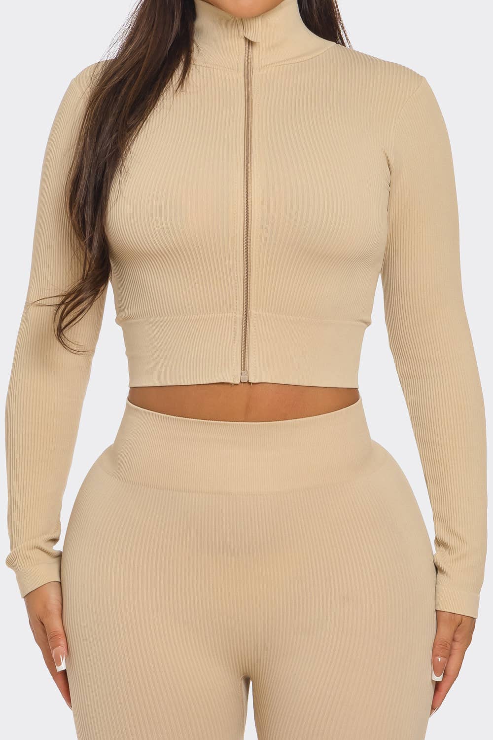 2 Pcs Seamless Zip Up Crop Top and Legging Set